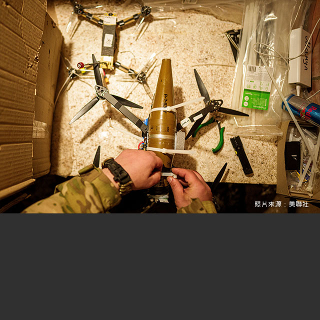 俄烏戰爭,烏克蘭以小博大運用各型無人機,包含土耳其製TB-2、美援的彈簧刀(Switchblade)、鳳凰幽靈(Phoenix Ghost)及波蘭的戰友(Warmate)等,並進一步將低成本商用無人機,改裝成能投彈或攜帶炸藥的自殺式無人機,扮演遊蕩彈藥角色。